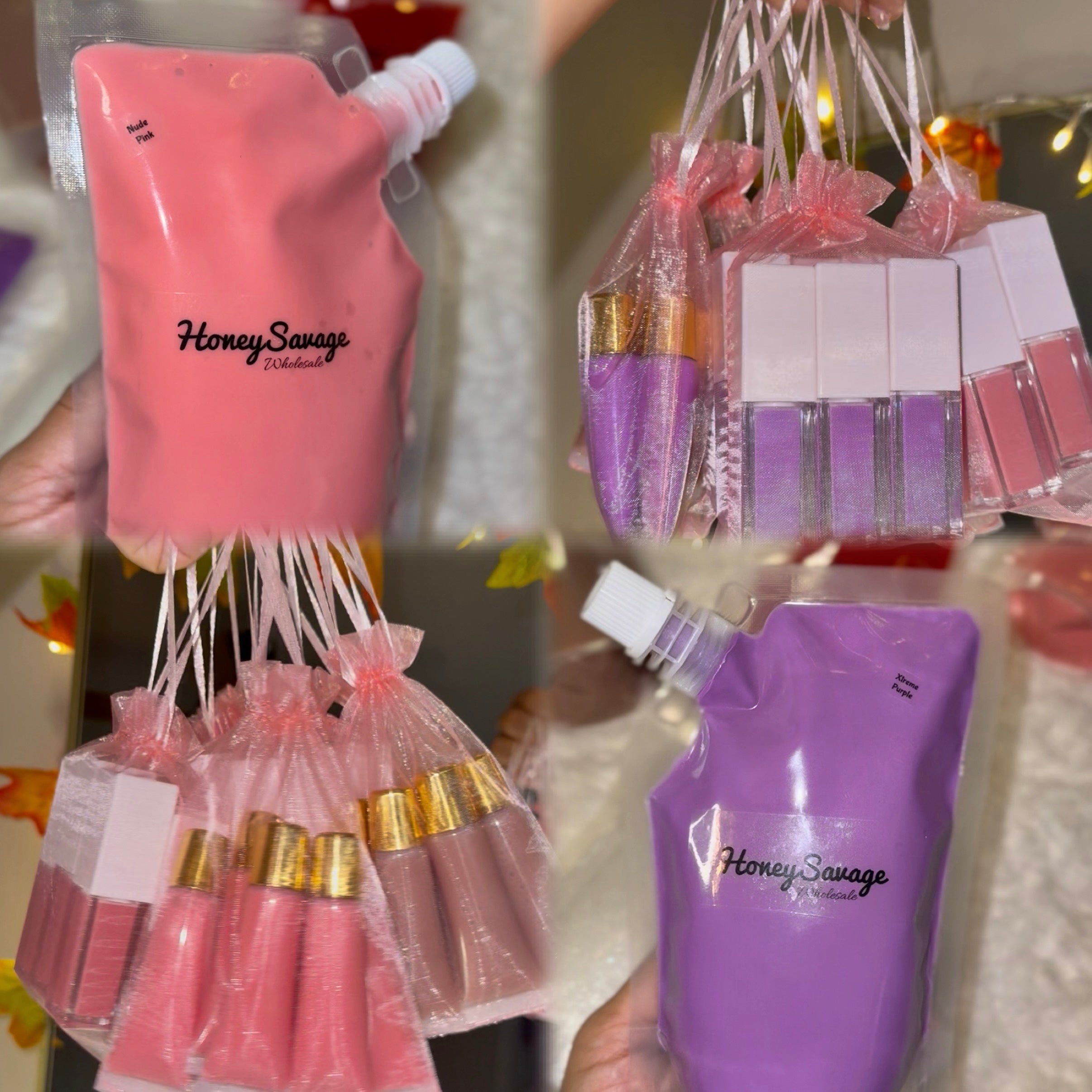Stock your business with confidence~ U.S based, tariff-free wholesale gloss with free shipping. Choose 8oz pouches, pre-filled tubes, or samples and grow your brand your way